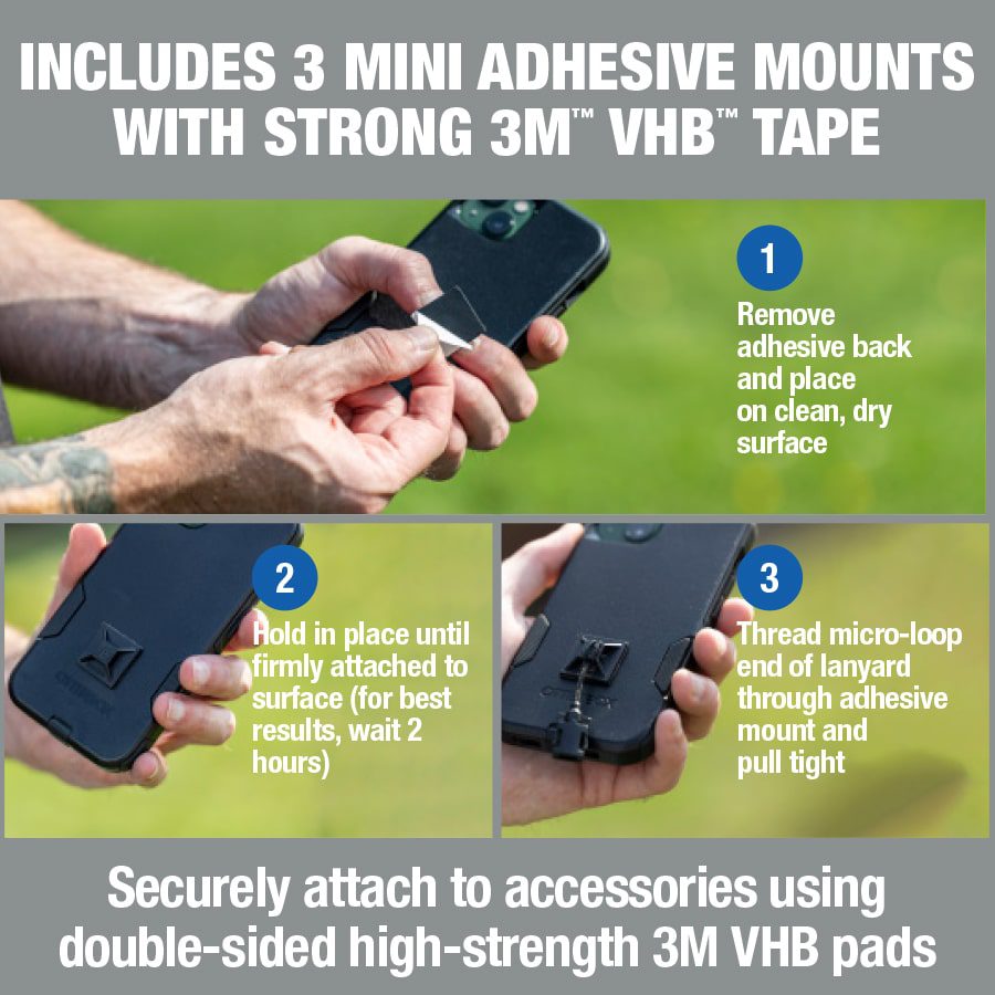 • Includes 1 coil lanyard and 3 mini adhesive mounts – replacements also available here