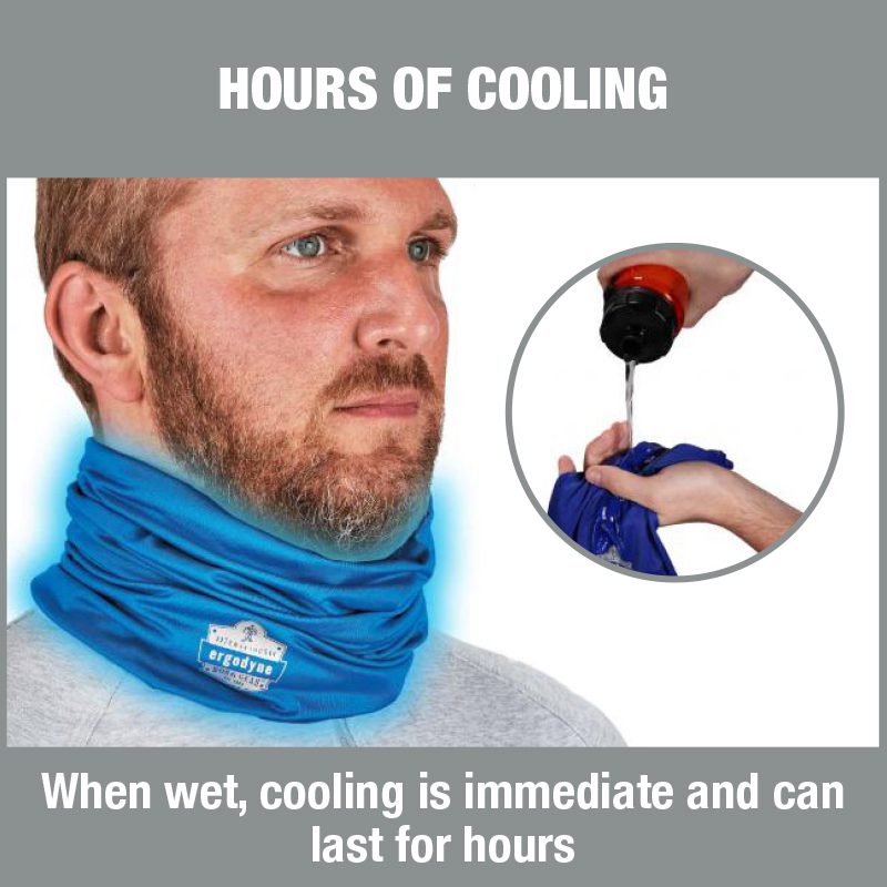 The Chill-Its 6487 Cooling Multi-Band offers head and face protection from the sun, dust and flying debris, as well as cooling relief. Plus, it features evaporative technology for immediate cooling, and UPF 50+ protection against the sun’s harmful rays when working outside.