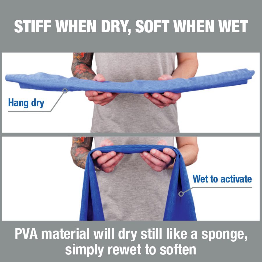 - HOW DOES IT WORK? – Cooling PVA material absorbs water and creates a cooling sensation as it evaporates