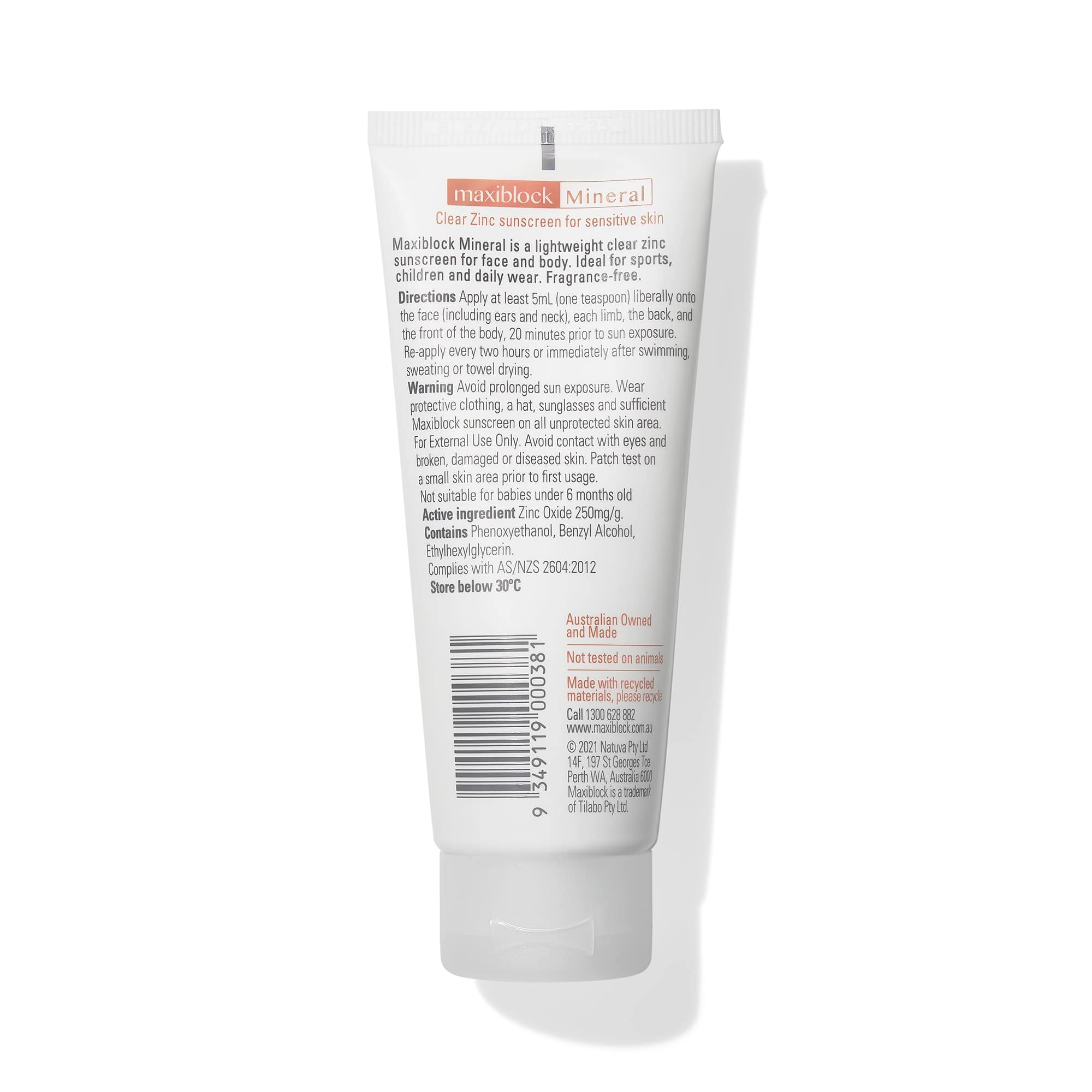 Maxiblock Mineral Clear Zinc Sunscreen SPF50 – 75g Tube is a lightweight non-greasy zinc sunscreen for face and body. It features the latest clear zinc technology and rubs invisibly onto the skin with exceptional transparency and dry touch feel.