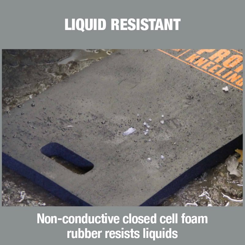 The ProFlex 380 Standard Kneeling Pad provides cushioning comfort and knee protection for static kneeling situations. This kneeling mat is made with thick nitrile rubber (NBR) closed-cell foam which will keep its shape over time and won’t absorb liquids. The durable closed-cell foam is non-conductive, resistant to petroleum, and silicone-free. A built-in convenient handle allows for easy transport and hanging storage making it the perfect knee cushion for work on the job site, in the garage, in the garden, or at home.
