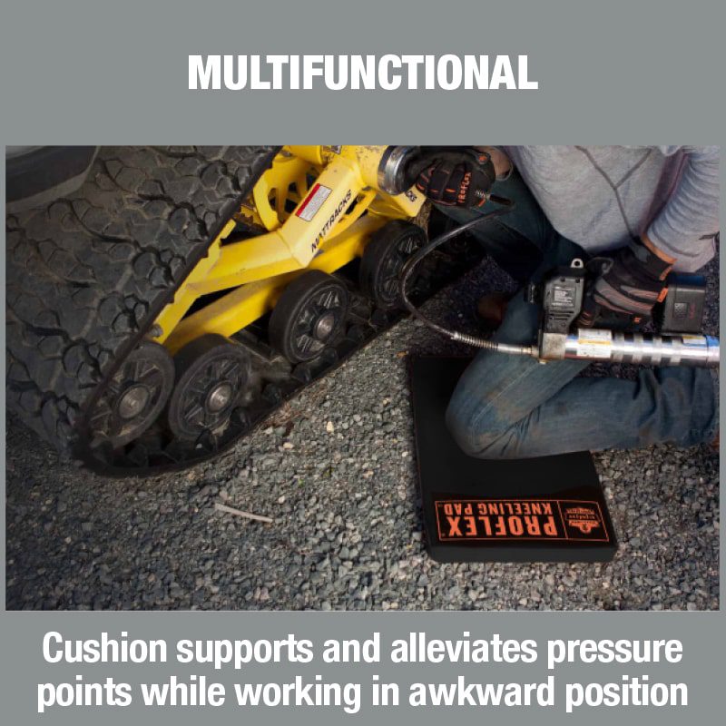 Designed for kneeling on cold surfaces, hard steel, concrete, grating, gravel, and wet surfaces. Great for mechanics, construction, plumbers, electricians, flooring, or anyone looking for quick, comfortable knee support without having to strap on work knee pads. Also great as a garden kneeler or for work around the house. Helps protect against common knee injuries on the job by supporting knees and joints.