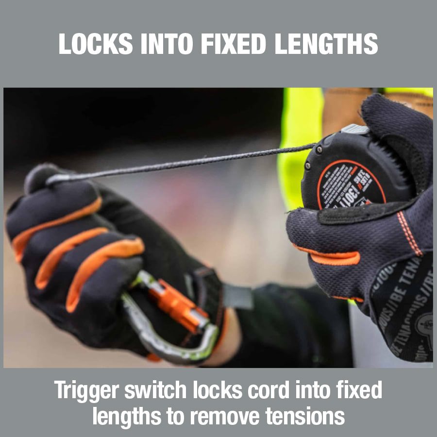 • LOCKS INTO FIXED LENGTHS – Trigger switch locks cord into fixed lengths to take the tension out