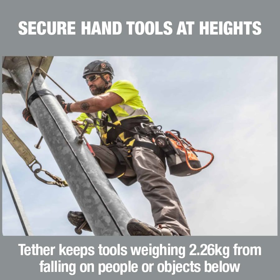 • MADE TO TETHER TOOLS – Tether keeps tools weighing 0.23kg in a retracted state and prevents tools weighing 3.6kg from falling on people or objects below.
