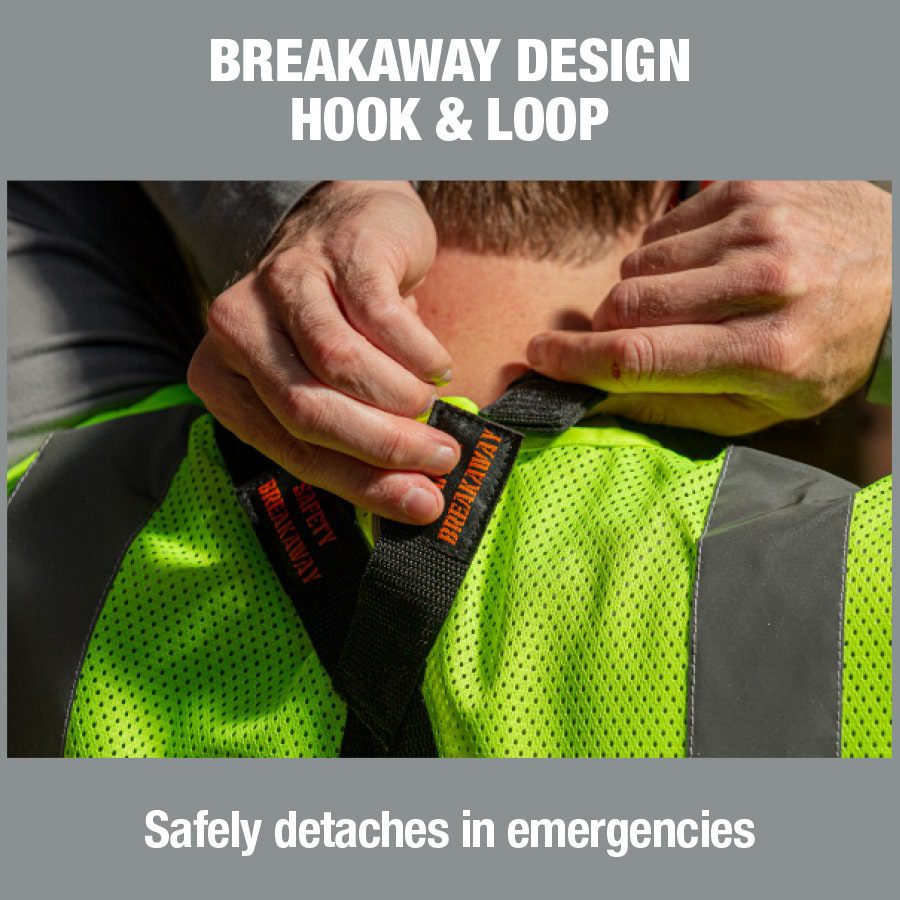 - BREAKAWAY DESIGN – Hook & loop closure allows harness to safely detach in emergencies