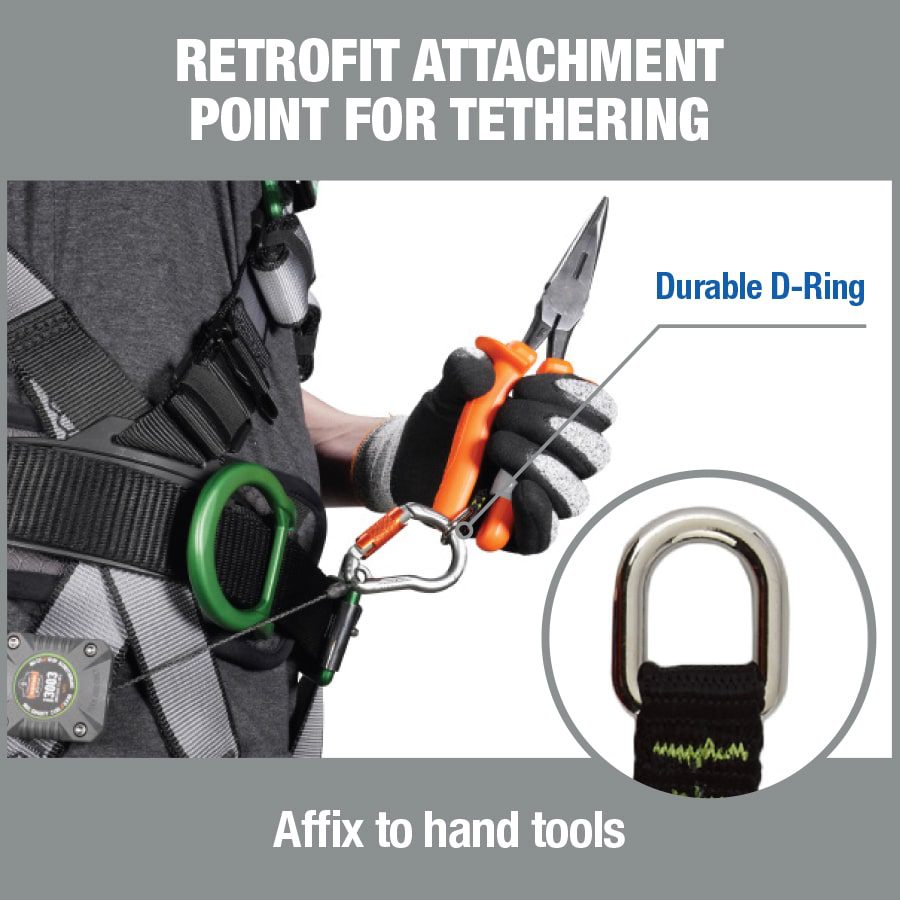 These tool tether attachments are built to withstand defined weight limits and can easily be used by any worker to help avoid accidentally dropping objects that could cause damage, injuries or possibly death. These attachments are third-party certified and meet the ANSI/ISEA 121-2018 standard with all required labelling. Ideal for those who need to tether tools in industries like construction, telecommunications, oil and gas, power generation, utilities, wind energy, manufacturing or other jobs at heights.
