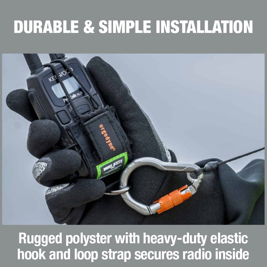 All Squids Tool Attachments are built to withstand defined weight limits and are easy to use by any worker, working to help avoid dropped objects that could cause unwanted damage, injuries or possibly death. Tool attachments and tool lanyards are part of an overall fall protection plan to reduce the risk of falling objects and increase workplace safety. When working at heights, it’s essential to tether tools. The Squids 3772 Radio Holster Trap is perfect for those working in construction, telecommunications, power generation, manufacturing, oil & gas, mining and transportation.