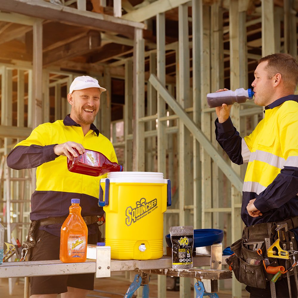 - Mix one bottle of Sqwincher 2 Litre Concentrate, add water & ice to make up to 20 litres of electrolyte replenishment