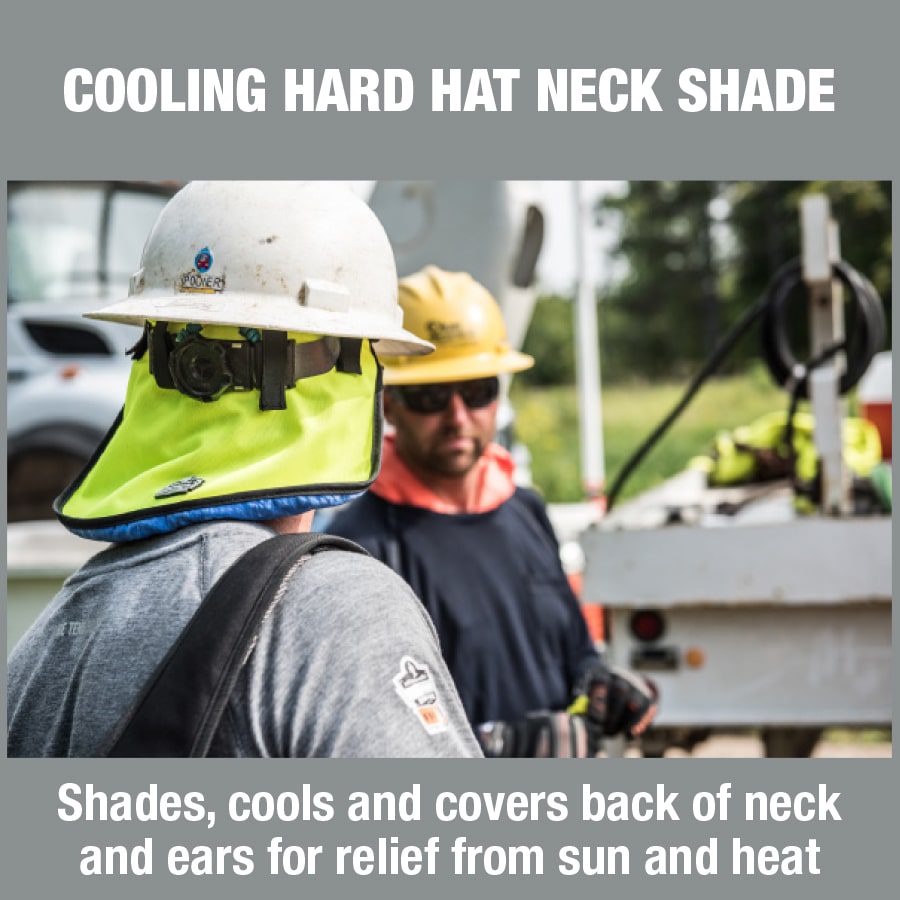 Let cooler heads prevail: For instant cooling relief and sun protection, the Chill-Its® 6670CT Evaporative Cooling Hard Hat Neck Shade is your ideal companion. This neck shade attaches effortlessly to most hard hats, offering a long and wide coverage area. The polyester fabric is comfortable and reusable, and you can easily machine wash it to keep it fresh and ready for use.